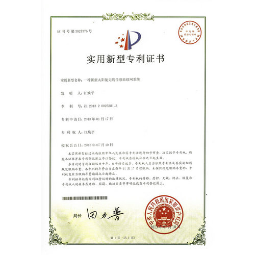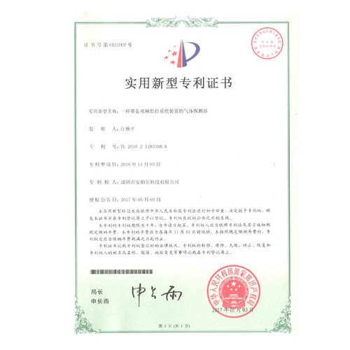 一種基于ZigBee的氣體檢測報警系統(tǒng)專利證書