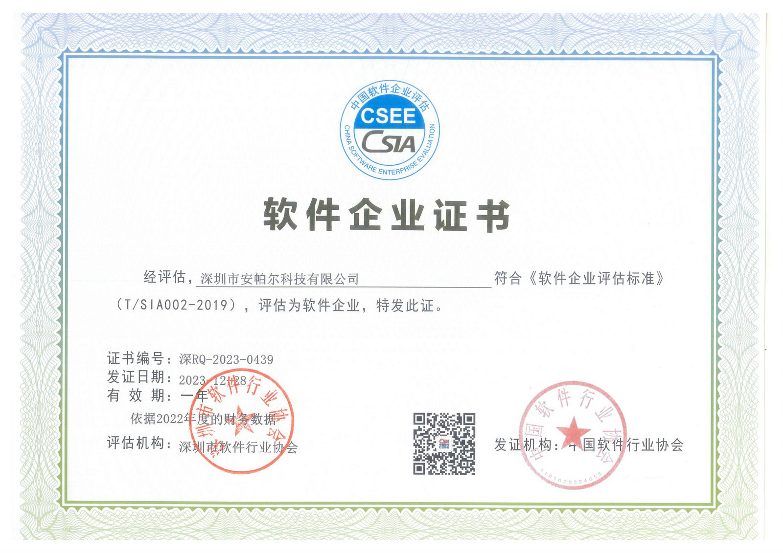 軟件企業(yè)證書