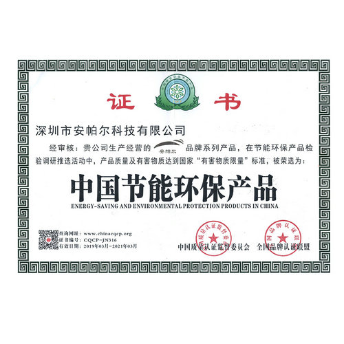中國(guó)環(huán)境保護(hù)產(chǎn)品認(rèn)證證書 APEG-AQ