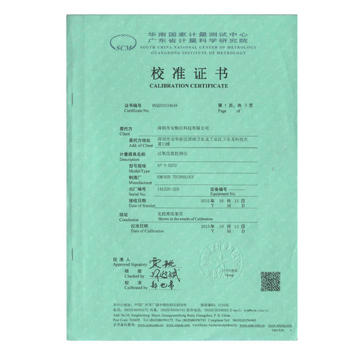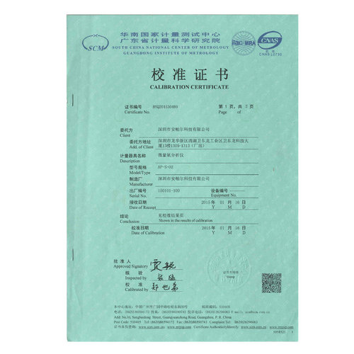 AP-S-O2 華南計量證書