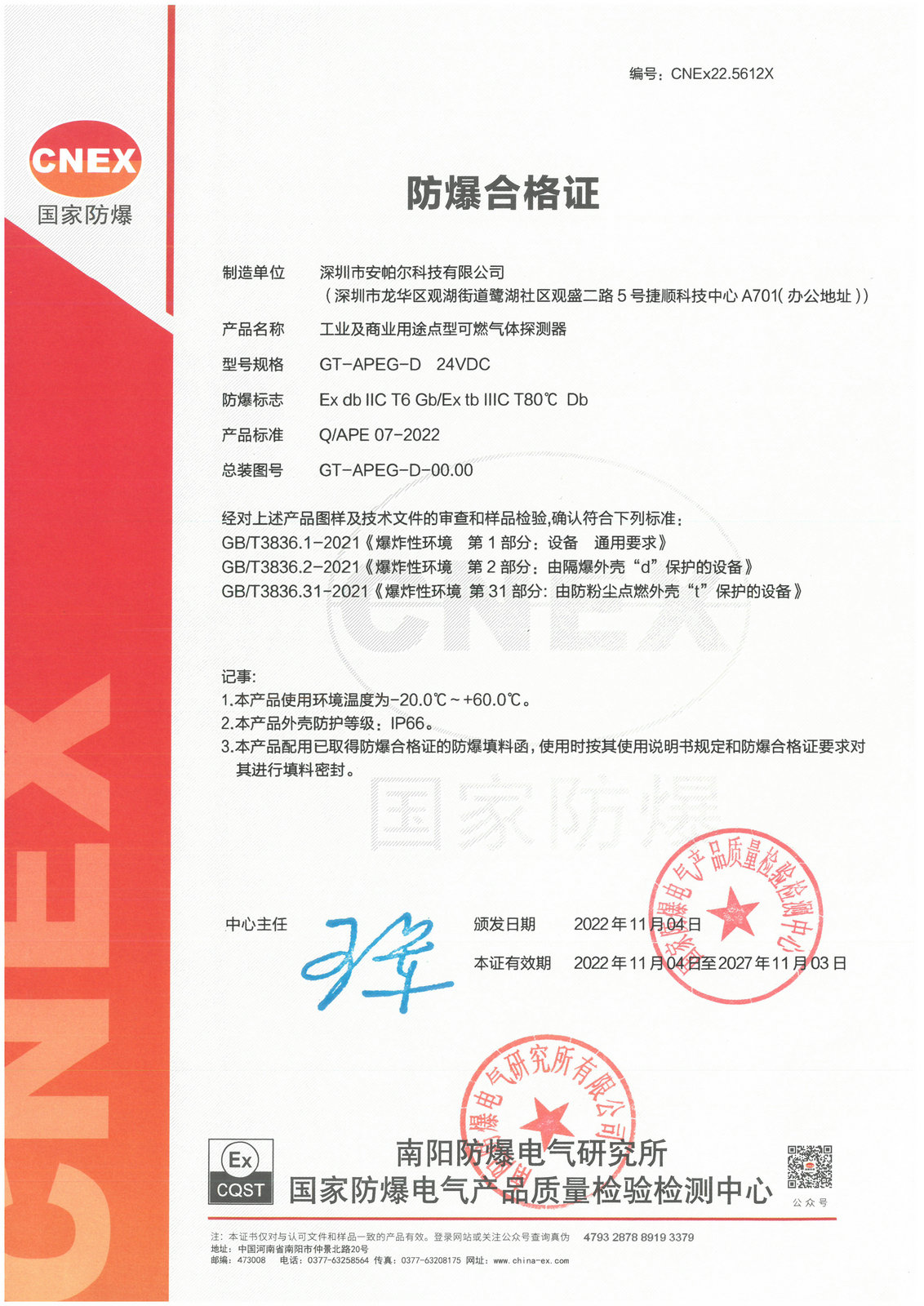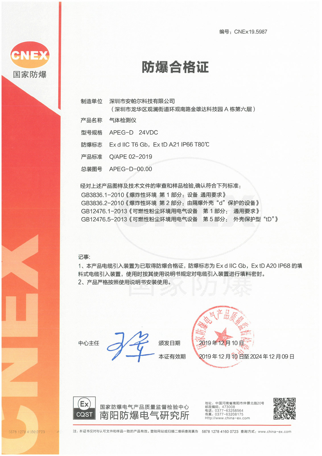 APEG-D 防爆合格證