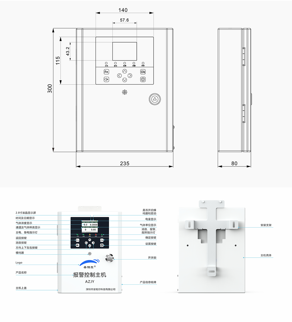 產品簡介:AAQF前鋒系列簡易報警控制主機是安帕爾公司為了應對中低端市場開發的一款功能實用,性價比高、操作便捷的報警控制主機。采用ARM32位微處理器技術作為控制單元,2.8寸彩色液晶顯示屏使用界面,8位操作按鍵;支持采集各類五氟化碘檢測儀(或其它檢測儀)等8組檢測濃度有線信號;支持RS485輸出;4組繼電器接口,用于控制風機、電磁閥和數據上傳使用;用戶可選RS485、TCP/IP網口通信或者NB-IOT、4G、5G等無線通訊方式。現場主要采用壁掛式安裝,適合多種應用場景。該產品可廣泛應用于石油、化工、電力、醫療、礦業等領域,集數據采集、顯示、報警、輸出和控制等功能于一體;...