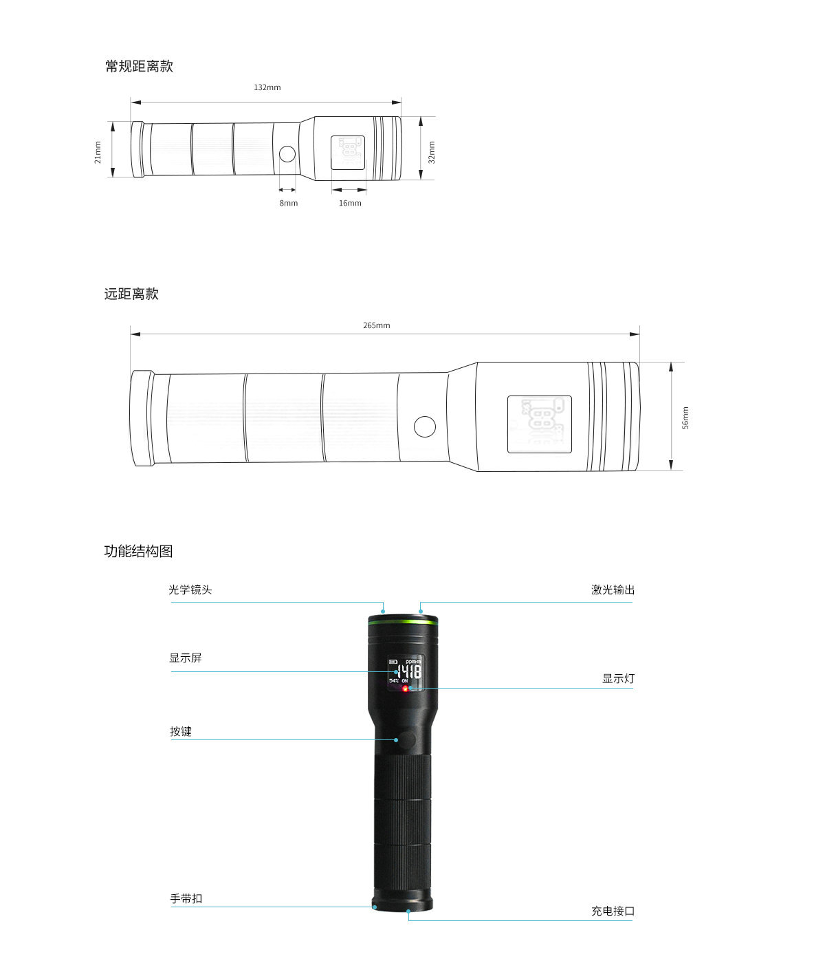 檢測激光ClassI;指示激光ClassiⅡ